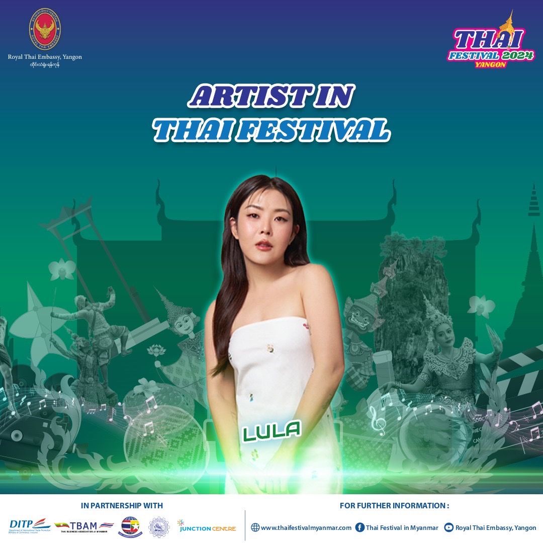 🌟✨ ထိုင်းနိုင်ငံရဲ့ နာမည်ကြီးအဆိုတော်၊ YouTube မှာ ကြည့်ရှုသူပေါင်း သန်း ၁၀၀ ကျော်ရှိတဲ့ တေးသီချင်းတွေကိုသီဆိုထားသူ “Lula”က ထိုင်းပွဲတော် ၂၀၂၄၊ ရန်ကုန် ကို လာရောက်ဆင်နွှဲမှာပါ။