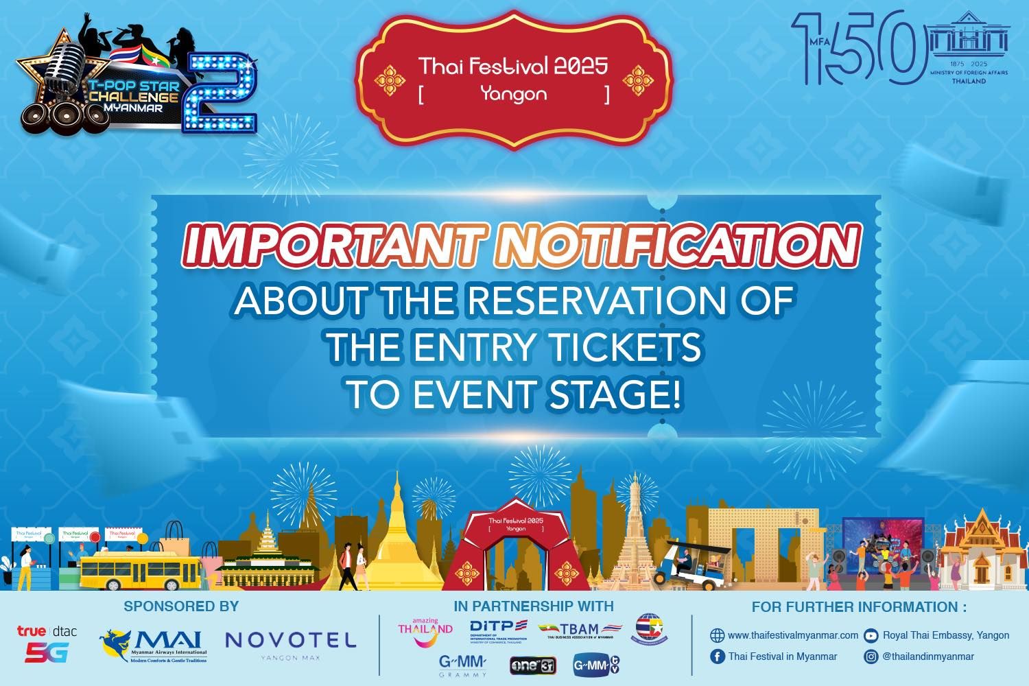 📢 Thai Festival 2025 in Yangon နှင့် T-Pop Star Challenge, Myanmar Season 2 အတွက် Stage Event ၀င်ရောက်ခွင့်အတွက် မှတ်ပုံတင်စနစ် ပိတ်သိမ်းသည့်ကြေညာချက်