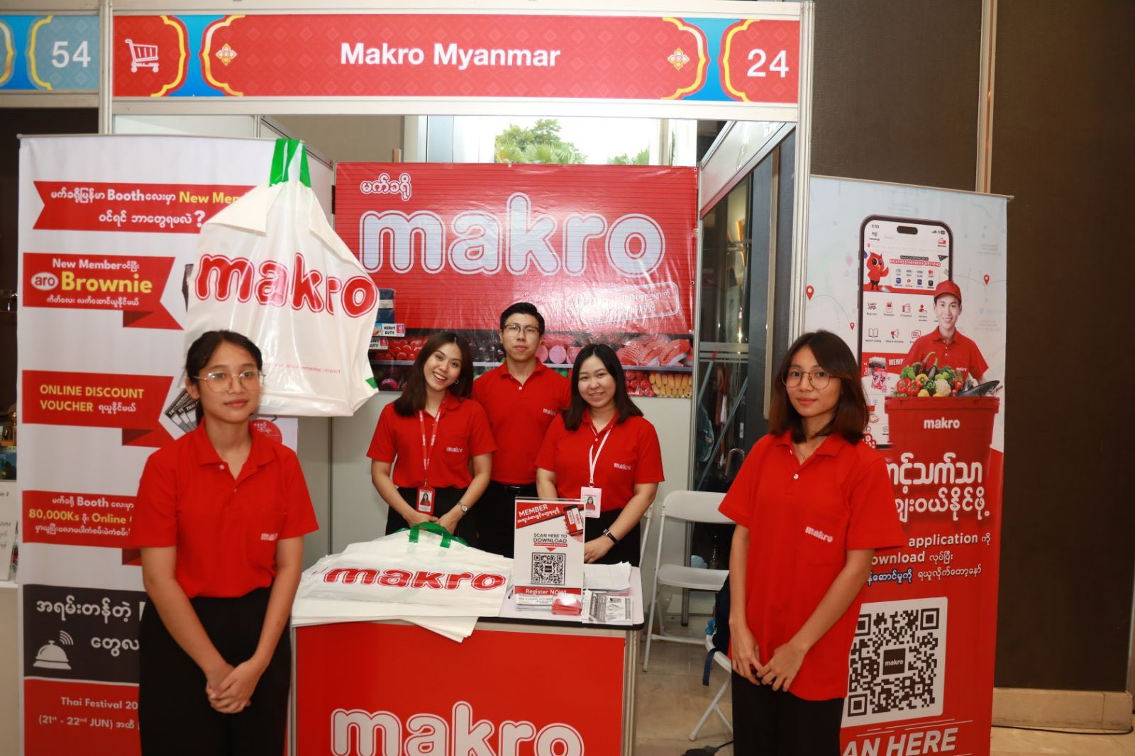 1. Booths from 54 Thai and Myanmar companies, showcasing a wide variety of Thai products and services such as food, health and beauty products, tourism, household items, artist merchandise, retail goods, fashion, and education.