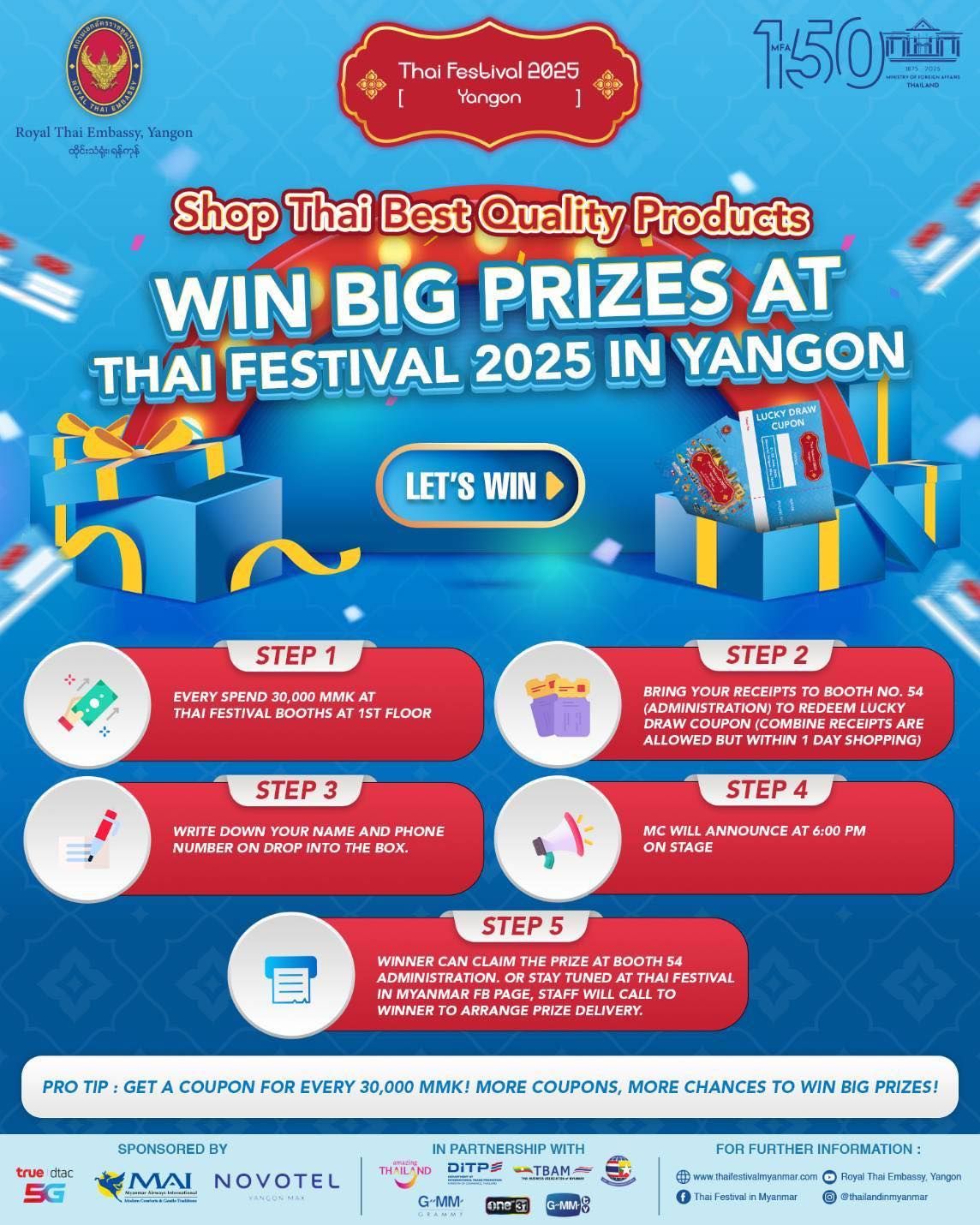 🎁ဆုလက်ဆောင်များစွာ ကံထူးနိုင်မယ့် "Thai Festival 2025 in Yangon" ရဲ့ Very Special Luck Draw အစီအစဉ်ကြီး 🎉